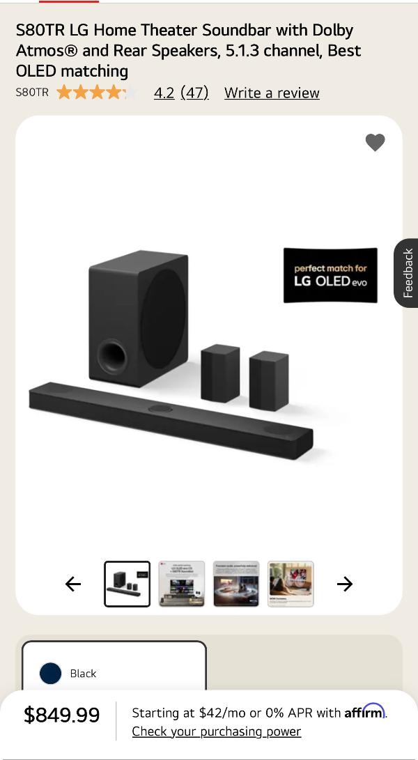 S80TR LG Home Theater Soundbar with Dolby Atmos® and Rear Speakers, 5.1.3 channel, Best OLED matching